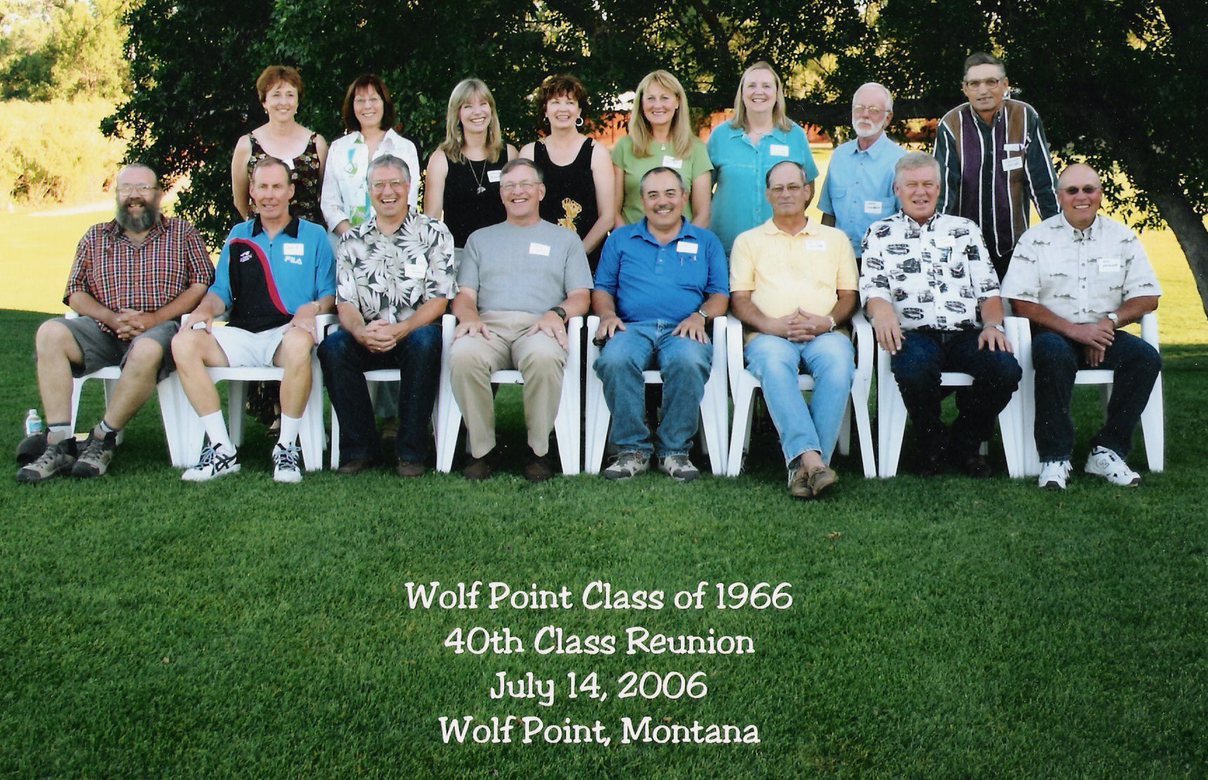 From John Rodenberg, here is the Wolf Point Class of 1966 40 year reunion photo: