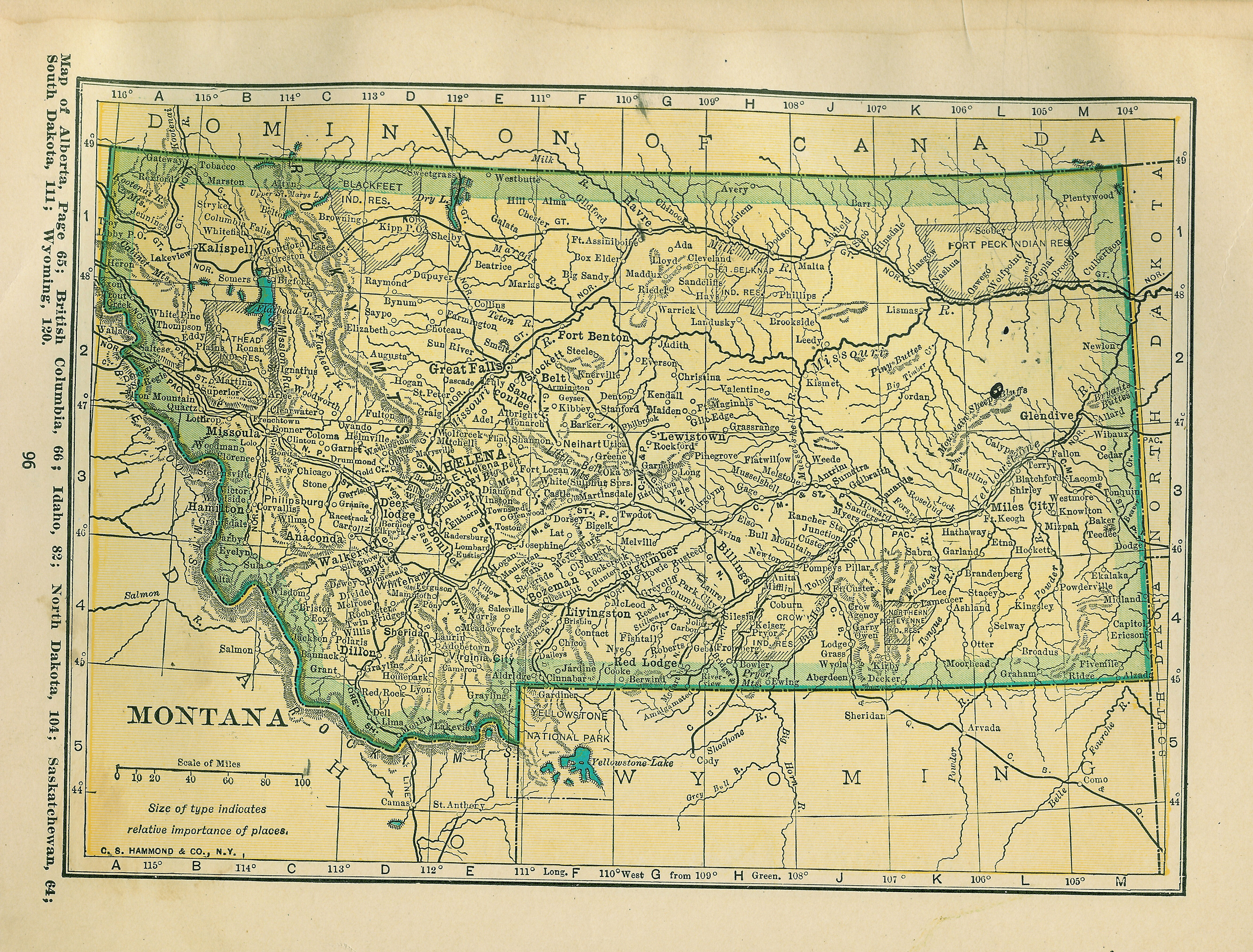A postcard from 1957 (I wonder where the mountains are near Wolf Point?)