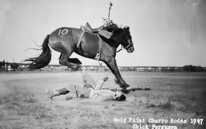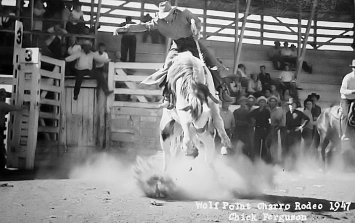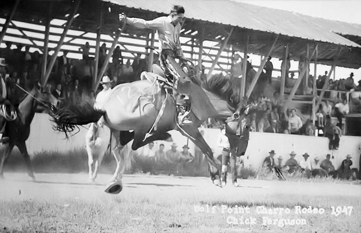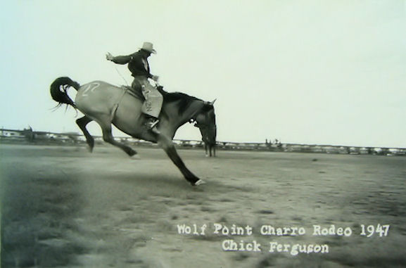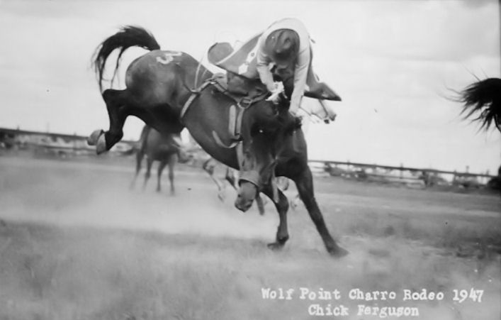 The following pictures were taken by Chick Ferguson, a photographer that was in Wolf Point for a long time. These are photos of a Charro out at the stampede grounds, circa 1947: